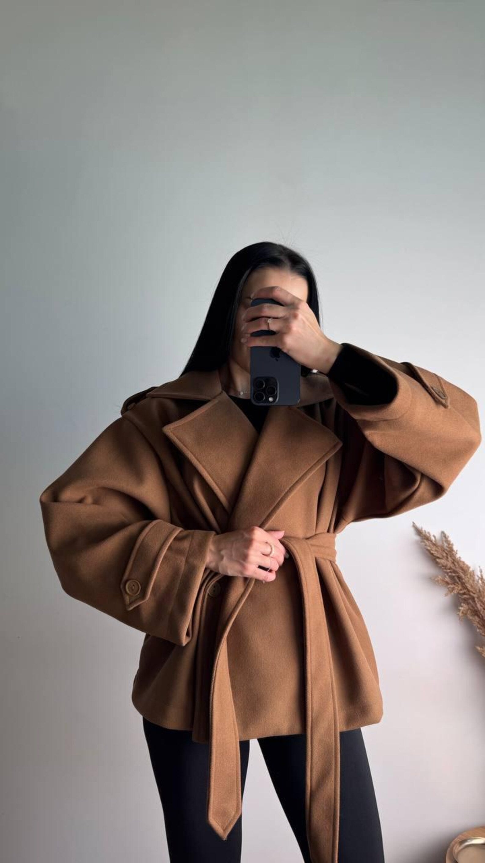 Découvrez l’élégance intemporelle avec ce trench coat court en cachemire turc premium, doux, chaud et parfaitement structuré.